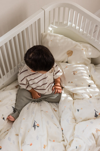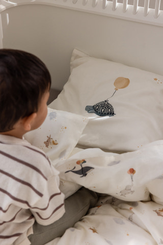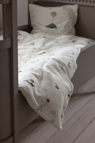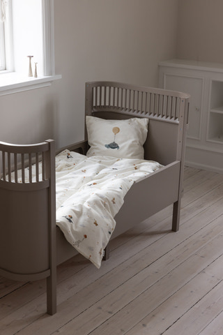 Skapa en trygg och mjuk miljö för ditt barn med juniorbäddset från Sebra. Juniorbäddsetet är tillverkat av supermjuk ekologisk bomull och har ett gulligt, unisex djurmotiv i lugna färger från Sebras World of Sebra-universum. Det består av ett påslakan och örngott i tysk juniorstorlek och levereras i en praktisk, matchande tygpåse.