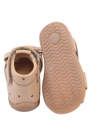 Pearl Lära-gå Rosett Sandal från Pompom är en charmig och praktisk sandal för de allra minsta. Tillverkad i mjukt läder med en flexibel gummisula som ger bra grepp och stöd när barnet tar sina första steg. Den söta rosetten och små hjärtan på sandalen gör den extra fin, samtidigt som den justerbara kardborreknäppningen gör det enkelt att ta av och på skon. Sandalen är lätt och bekväm, vilket gör den idealisk för små fötter som behöver röra sig fritt och säkert. Perfekt för både inomhus och utomhus lek under varma dagar.