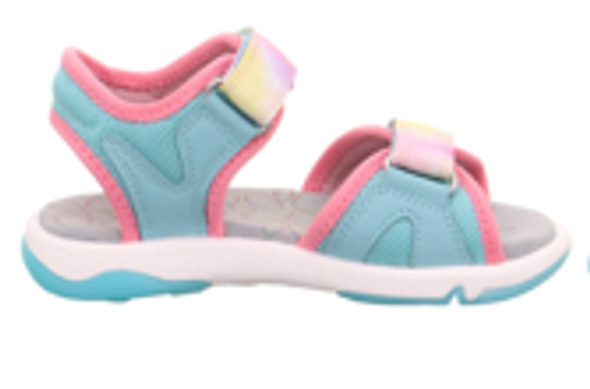 Superfit Pebbles Sandal i ljusgrön/rosa är den perfekta sommarsandalen för aktiva barn. Sandalen är designad med fokus på komfort och rörelsefrihet, så att små fötter kan leka och utforska hela dagen lång. De två justerbara kardborreknäppningarna gör det enkelt att justera sandalen så att den sitter säkert och bekvämt på foten. Den mjuka, stötdämpande sulan ger bra stöd, medan det ventilerande materialet ser till att fötterna hålls svala även under varma dagar. Den färgglada designen med söta detaljer gör sandalen extra tilltalande för barn som älskar starka färger.