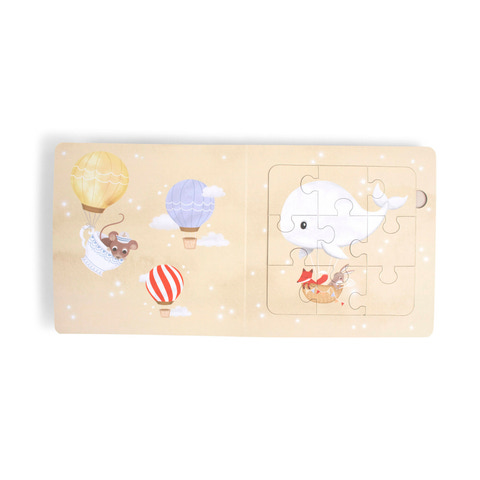 Denna omsorgsfullt designade kartongbok har tjocka sidor och innehåller fyra spännande pussel, vart och ett med 9 stora bitar som är lätta för små händer att hantera. Med sin kompakta storlek (17x17 cm) är den idealisk för resor eller lugnt lekande hemma. Bokens sidor kan enkelt torkas rena, så den är redo för nästa äventyr. Lämplig för barn från 3 år, den stöder utvecklingen av finmotorik, koncentration och problemlösning.