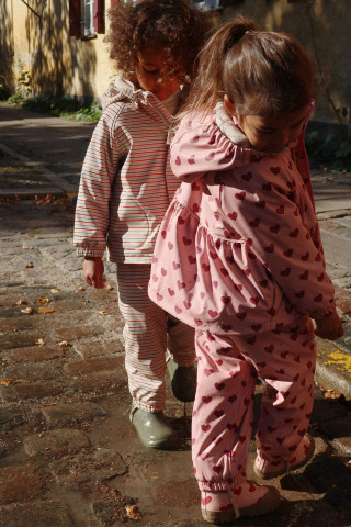Observera: Alla regnbyxor upp till storlek 4 år har hängslen. Från storlek 5–6 år har regnbyxorna resår i midjan, vilket gör dem lätta att ta på och av.