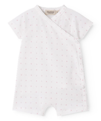 Rap Kortärmad Jumpsuit från MarMar Copenhagen är ett perfekt plagg för aktiva barn under varma dagar. Den är tillverkad av en mjuk och stretchig blandning av modal, ekologisk bomull och elastan, vilket ger en behaglig känsla mot huden och gör jumpsuiten både slitstark och flexibel. Den kortärmade designen och de korta benen gör den sval och bekväm, samtidigt som tryckknapparna framtill underlättar av- och påklädning. Plagget är idealiskt för lek, vila och utflykter, och den stilrena designen passar lika bra hemma som på förskolan.