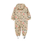Regnkläder i PU från CeLaVi. Regnkläderna har ett heltäckande tryck. Det finns smala reflekterande ränder runt ena armen och ett ben. Logotypen är tryckt med reflekterande bläck längst upp på ena armen och på baksidan av huvan. CeLaVi-regnkläderna har en avtagbar huva som fästs med tryckknappar i kragen. Den stängs framtill med en vattentät dragkedja. Ansiktsöppningen på huvan, ärmarna och midjan har resår för bättre passform. Byxorna har praktiska och justerbara elastiska band som kan dras under skorna.