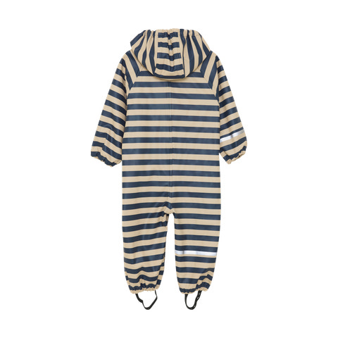 Regnkläder i PU från CeLaVi. Regnkläderna har ett heltäckande tryck. Det finns smala reflekterande ränder runt ena armen och ett ben. Logotypen är tryckt med reflekterande bläck längst upp på ena armen och på baksidan av huvan. CeLaVi-regnkläderna har en avtagbar huva som fästs med tryckknappar i kragen. Den stängs framtill med en vattentät dragkedja. Ansiktsöppningen på huvan, ärmarna och midjan har resår för bättre passform. Byxorna har praktiska och justerbara elastiska band som kan dras under skorna.