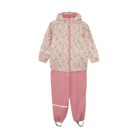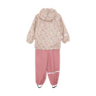 Praktiskt regnklädeset i PU från CeLaVi. Setet består av en jacka med heltäckande tryck och en enfärgad byxa. Byxan har justerbara hängslen och klickknappar upp till storlek 110, därefter är den utan hängslen. Byxan har praktiska och justerbara elastiska band som kan dras under skorna. Jackan stängs med en vattentät dragkedja. Det finns smala reflekterande ränder runt ena armen och ett ben. Logotypen är tryckt med reflekterande bläck högst upp på ena armen och på baksidan av huvan. CeLaVi-regnjackan har en avtagbar huva som fästs med tryckknappar. Öppningen för ansiktet på huvan, ärmarna och midjan har resår för bättre passform. Certifierad enligt GRS – Tillverkad av 66 % återvunnet