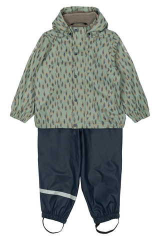 Regnställ m. Fleece - Iceberg green