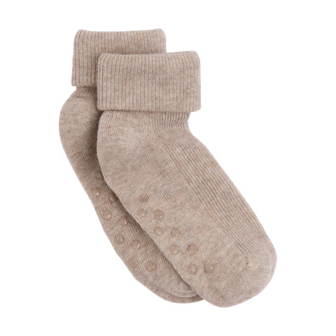 Praktiska strumpor med ABS-sula, som gör det säkert för barnet att röra sig runt på hala och ojämna ytor.