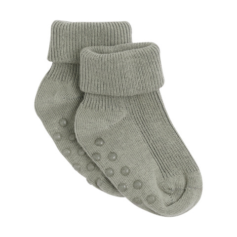 Praktiska strumpor med ABS-sula, som gör det säkert för barnet att röra sig runt på hala och ojämna ytor.