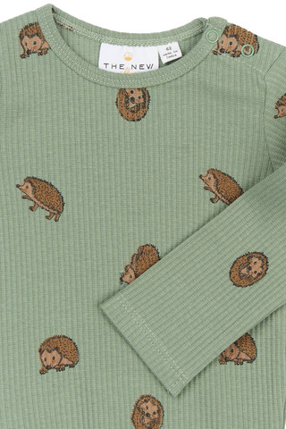 Denna långärmade bodyn från THE NEW Siblings är både mjuk och funktionell och har ett charmigt all-over-tryck med små igelkottar. Den smala passformen och praktiska tryckknappar vid axlarna och nederkant gör den lätt att ta av och på – perfekt för både vardagsbruk och lek. Ett sött och bekvämt val för de allra minsta.