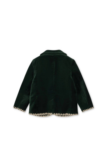 Mjuk velourkavaj med tidlösa detaljer. Med klassiska slag, knäppning, paspolerade fickor och dekorativa vita kontrastsömmar.