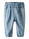 Rose R Jeans från NAME IT är ett par söta och bekväma byxor för de små. Byxorna är tillverkade i mjuk och lätt denim, vilket ger stor rörelsefrihet för lek och vardagsbruk. Den elastiska midjan och anklerna gör att byxorna sitter bra utan att vara för trånga och är lätta att ta på och av. De praktiska sidfickorna ger en snygg touch, medan den ljusblå färgen passar till det mesta i garderoben. Perfekt för både vardagsbruk och mysiga stunder.