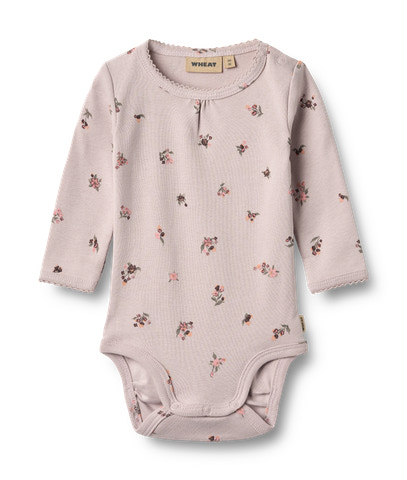 Långärmad body med tryck i mjuk ekologisk bomull för din baby. Wheats bas-body är en riktig klassiker i småbarnsgarderoben. Denna body har tryckknappar på ena axeln samt i grenen för ökad komfort vid påklädning. Använd bodyn som det innersta lagret i alla outfits, eftersom den är mjuk och skön mot huden.
