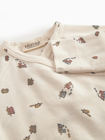 Rubello jumpsuit från MarMar Copenhagen är en söt och bekväm jumpsuit för de små. Dräkten har ett charmigt tågmotiv som gör den extra söt, och den praktiska knäppningen med tryckknappar gör det enkelt att klä på och av ditt barn. Fötterna i jumpsuiten håller små tår varma, och den mjuka bomullen gör att huden kan andas och må bra hela dagen. Jumpsuiten är perfekt både som nattkläder och för mysiga stunder under dagen, och den är designad med fokus på både komfort och funktionalitet.