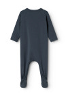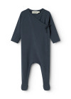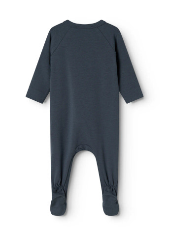 Denna långärmade jumpsuit med täta tår är perfekt för små barn. Den har en praktisk omlottknäppning som går från halsen ner längs ett ben och fästs med tryckknappar och band – enkelt och bekvämt vid påklädning och blöjbyte. Overallen är tillverkad i mjuk jersey med elastan, vilket gör den stretchig och bekväm att ha på sig, samtidigt som den behåller sin form och färg.