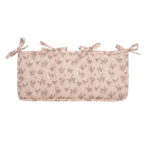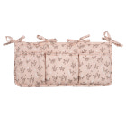 Mjuk och praktisk förvaring att hänga på sängen. Med band för att fästa på spjälsäng eller sängkant. Perfekt för pixiböcker, nappflaskor m.m. Mått 50 x 20 cm.