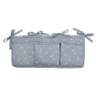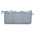 Mjuk och praktisk förvaring att hänga på sängen. Med band för att fästa på spjälsäng eller sängkant. Perfekt för pixiböcker, nappflaskor m.m. Mått 50 x 20 cm.
