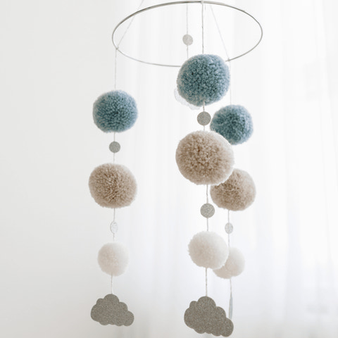 En vacker kombination av handgjorda ullpomponer och glänsande detaljer väcker ditt barns fascination för former och färger. Neutrala och pastellfärgade toner ger en delikat inredning till ditt barns rum.