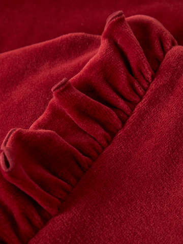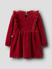 Saga Saga Dress från Lil' Atelier i Red Dahlia är en elegant och bekväm klänning som passar perfekt både till vardags och fest. Klänningen är tillverkad i mjuk velour som känns skön mot huden och ger ett exklusivt utseende. De fina volangerna på framsidan ger en söt och feminin touch, medan den klassiska rundhalsen och långa ärmarna säkerställer en bra passform. Med den praktiska knäppningen i nacken är klänningen lätt att ta på och av, vilket gör den idealisk för aktiva barn. Den djupa röda färgen gör klänningen till ett självklart val för höst och vinter, och den kan stylas med strumpbyxor och stövlar för en komplett look.