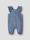 Sage Denim Overall från NAME IT är en charmig och praktisk jumpsuit för de små. Den mjuka denimen i denimblått är utsmyckad med fina broderade blommor, vilket ger den en söt och lekfull look. Volangerna på axlarna ger en feminin touch, medan knäppningen framtill gör det enkelt att ta på och av jumpsuiten. Elastiken vid benen säkerställer att jumpsuiten sitter bra och bekvämt, så att ditt barn kan röra sig fritt. Perfekt för både vardagsbruk och festliga tillfällen där komfort och stil går hand i hand.