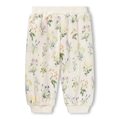 Sallie Byxor - Primavera från Molo är ett underbart tillskott till barnens garderob. Byxorna är tillverkade i en mjuk blandning av bomull och elastan, vilket ger både komfort och rörelsefrihet. Det fina blommönstret i ljusa färger och de söta volangdetaljerna längs sidorna gör byxorna extra speciella. Med resår i midjan och vid bensluten sitter de bekvämt hela dagen, oavsett om det är lek eller vila. Dessa byxor passar lika bra till vardags som till festligare tillfällen och är enkla att matcha med andra plagg.
