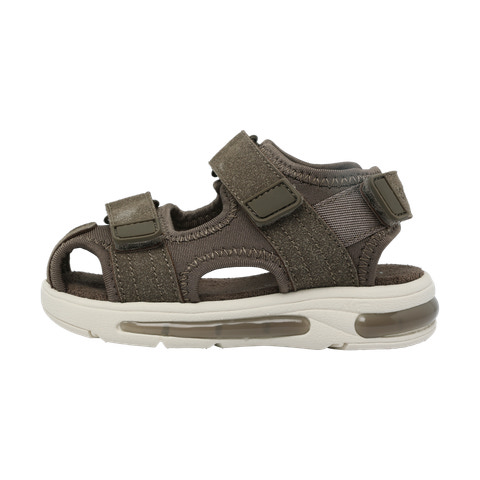 Sandal Velcro with Light från En Fant är den perfekta sommarsandalen för aktiva barn som älskar att leka och röra på sig. Sandalen är designad med två praktiska kardborreband, som gör det enkelt för barnet att ta på och av skon själv, samtidigt som den sitter bra och stabilt. Den mjuka och flexibla sulan ger optimal komfort, så att barnen kan springa och leka hela dagen utan att bli obekväma. En rolig och unik detalj är det inbyggda ljuset i sulan, som blinkar när barnet går – detta gör sandalen extra populär och ger vardagen en lekfull touch. Sandalen har öppna ytor vid tårna och på sidorna, vilket säkerställer god ventilation och håller fötterna svala under varma dagar. Materialet är slitstarkt och lätt att rengöra, så sandalen håller sig snygg hela sommaren. En tillväxtmarginal på 1 cm rekommenderas.