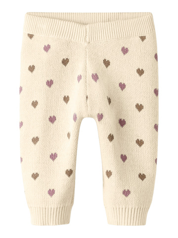 Saran Heart Knitted Trousers från Lil' Atelier i Turtledove är ett underbart val för de små. Byxorna är stickade i en mjuk och varm kvalitet som garanterar komfort hela dagen lång. Det fina hjärtmönstret i dämpade nyanser ger en charmig och lekfull look, medan den elastiska resåren i midjan och vid anklarna gör att byxorna sitter bra utan att vara för åtsittande. De är lätta att kombinera med både bodys och blusar och passar perfekt både till vardags och fest. Ett mysigt och stilrent val som håller ditt barn varmt och glad.