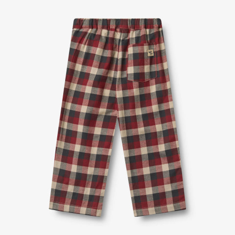 Löst sittande byxor med rutmönster i mjuk, vävd ekologisk bomull för barn. Wheat har designat dessa snygga byxor i mjukt vävt tyg för att sprida magisk julstämning. Med sin lösa passform är de både lätta och bekväma för ditt barn att ha på sig hela dagen. De är perfekta att kombinera med en snygg basblus, skjorta eller tröja på kyligare dagar – redo för både festliga stunder ute och vardagsmagi hemma.