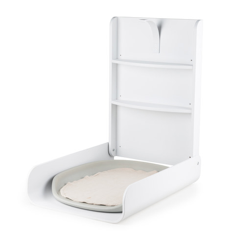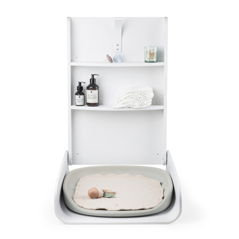 Det väggmonterade skötbordet är en smart och platssparande lösning för badrummet, sovrummet eller andra små rum där du vill ha en funktionell skötplats. Med sitt lätta och svävande utseende passar skötbordet perfekt in i moderna interiörer – både öppna och slutna. När du har ditt barn i famnen och behöver byta blöja snabbt, ser skötbordets låsmekanism till att du enkelt kan fälla ner bordet med en hand. Låsmekanismen är tillverkad av formpressat trä, precis som Sebra-sängen, och håller bordet på plats när du fäller upp det. De två integrerade hyllorna, som syns när bordet är nedfällt, ger plats för de viktigaste skötartiklarna. Sebra-skötunderlägget passar perfekt på skötbordet och sitter kvar när du fäller upp och ner bordet. Skötbordets höga, rundade kanter skapar en säker och trygg skötplats för både dig och ditt barn. Skapa en bra arbetsposition vid det väggmonterade skötbordet genom att montera det på en höjd som passar dig.