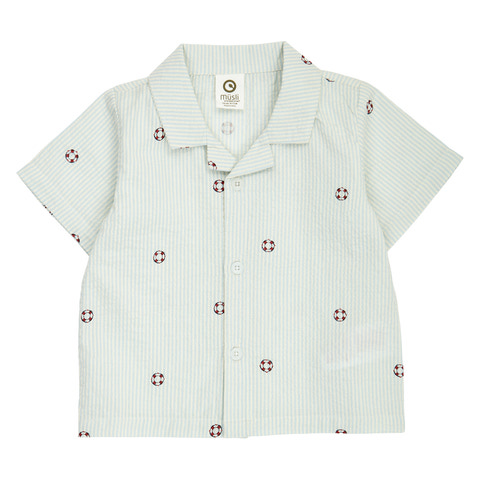 Den här seersucker-skjortan från Müsli är ett utmärkt val för sommarens alla äventyr. Skjortan är sydd i ekologisk bomull som känns mjuk och behaglig mot huden, samtidigt som seersucker-strukturen ger en sval och luftig känsla. Det randiga mönstret i färgerna tofu, ocean och mineral red tillsammans med små livbojar ger skjortan en lekfull och maritim look. Med korta ärmar och knappar framtill är den både praktisk och stilren – perfekt för både vardag och festliga tillfällen.