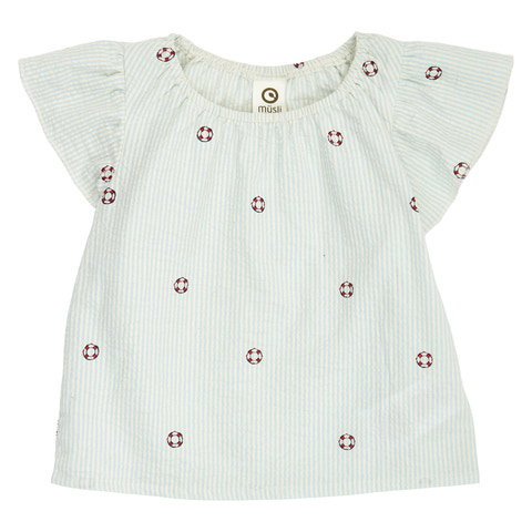 Den här randiga volangtoppen från Müsli är ett underbart tillskott till barnets sommargarderob. Tillverkad i ekologisk bomull med en luftig seersucker-struktur, känns den sval och behaglig mot huden även under de varmaste dagarna. Toppen har ett lekfullt randigt mönster i färgerna tofu, ocean och mineral red, samt söta volangärmar som ger en extra touch av elegans. Den mjuka resåren i halsen gör den enkel att ta på och av, och den ekologiska bomullen är snäll mot både barnets hud och miljön. En perfekt topp för både lek och fest!