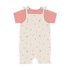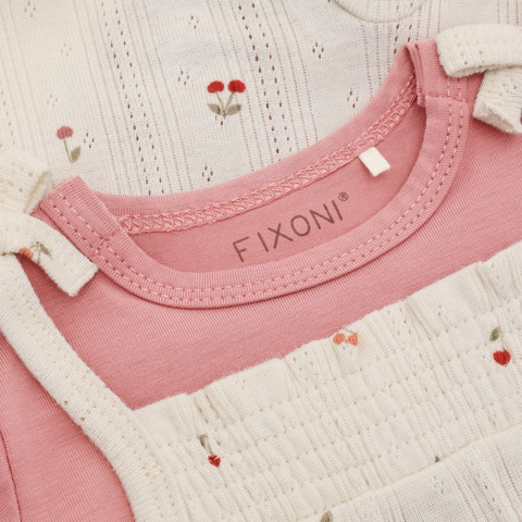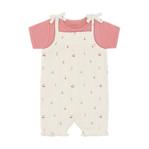 Denna söta set från Fixoni består av en kortärmad bodysuit i en vacker rosa nyans och en romper i färgen Eggnog med ett bedårande prickmönster och små körsbärstryck. Setet är designat med fokus på både komfort och funktionalitet, så att ditt barn kan röra sig fritt och samtidigt se bedårande ut. Bodyn har mjuka kanter och tryckknappar i nederkanten, vilket gör det enkelt att byta blöjor, medan romperns knytband i axlarna säkerställer en bra passform och ett charmigt utseende. Materialet är mjukt och bekvämt mot barnets känsliga hud, och den lätta designen gör setet perfekt för både vardagsbruk och festliga tillfällen. Setet är perfekt för de varma månaderna när ditt barn behöver lätta och andningsbara kläder, och det fina trycket och de delikata detaljerna ger en extra touch till deras garderob.