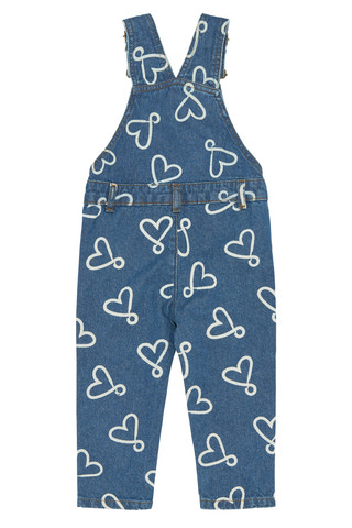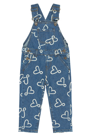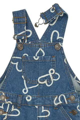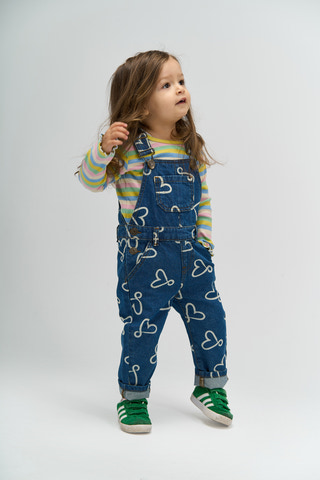 Shea Denim Hängselbyxor från The New Siblings är ett charmigt tillskott till barnens garderob. De är tillverkade i slitstark denim med ett lekfullt hjärttryck som ger en glad och modern känsla. Hängselbyxorna har justerbara axelband och knappar i sidorna för enkel på- och avtagning, samt en praktisk bröstficka och sidofickor för små skatter. Den klassiska blå färgen gör dem lätta att matcha med olika toppar och tröjor, och den mjuka bomullskvaliteten ger komfort hela dagen. Perfekta för både lek och vardagsäventyr!
