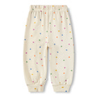 Simeon Byxor från Molo är ett par lekfulla och bekväma byxor i färgen Confetti Rainbow. De är tillverkade av 100% ekologisk bomull, vilket gör dem både mjuka och skonsamma mot barnets hud. Byxorna har ett glatt mönster med små hjärtan i regnbågens färger, vilket ger en rolig och unik stil. Den justerbara midjan med dragsko och de mjuka muddarna vid bensluten gör att byxorna sitter bra och är perfekta för både lek och vila. Ett utmärkt val för dig som vill ha både komfort och hållbarhet i barnets garderob.