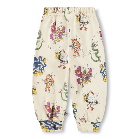 Simeon Byxor från Molo är ett par lekfulla och bekväma byxor i färgen Confetti Rainbow. De är tillverkade av 100% ekologisk bomull, vilket gör dem både mjuka och skonsamma mot barnets hud. Byxorna har ett glatt mönster med små hjärtan i regnbågens färger, vilket ger en rolig och unik stil. Den justerbara midjan med dragsko och de mjuka muddarna vid bensluten gör att byxorna sitter bra och är perfekta för både lek och vila. Ett utmärkt val för dig som vill ha både komfort och hållbarhet i barnets garderob.