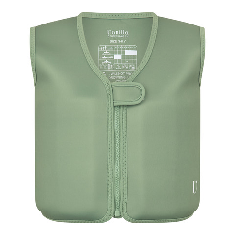 Simvästen från Vanilla COPENHAGEN är ett perfekt hjälpmedel för barn som vill lära sig simma och känna sig trygga i vattnet. Västen är tillverkad i mjuk neopren och polyester, vilket gör den både bekväm och slitstark. Den är enkel att ta på och av tack vare en smidig dragkedja och kardborre framtill. Med sin stilrena design i färgen Fern passar den lika bra på stranden som vid poolen. Simvästen ger barnet extra flytkraft och stöd, vilket gör det lättare att öva på simtag och rörelser i vattnet. Ett utmärkt val för föräldrar som vill ge sitt barn en rolig och säker start på simningen!