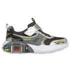 Skechers Garage - Silver är en lekfull och sportig barnsko som kombinerar komfort med ett roligt biltema. Skon har en snygg silverfärgad ovandel med detaljer som inspirerats av racing, vilket gör den till en favorit bland små bilentusiaster. Den är utrustad med både kardborreband och elastiska snören, vilket gör det enkelt för barnet att ta på och av skon själv. Den stötdämpande mellansulan ger skön komfort under hela dagen, och den slitstarka yttersulan ger bra grepp på olika underlag. Perfekt för både lek och vardagsäventyr!