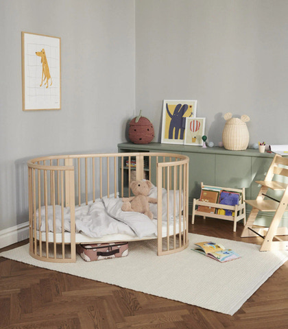 Sleepi: Spjälsängen är hjärtat i barnrummet. Den ska vara vacker, funktionell och framför allt säker och bekväm för ditt barn. Stokke® Sleepi™ är tillverkad av massivt europeiskt bokträ och kan justeras både i höjd och längd för att passa ditt barns behov när det växer. Den mjuka, ovala designen ger ditt barn en känsla av trygghet och låter det sova bekvämt och drömma söta drömmar. Justera madrassens höjd när ditt barn växer och börjar klättra. Stokke® Sleepi™-sängen växer med ditt barn från födseln till 5 års ålder. När ditt barn når den nyfikna klättringsåldern kan du ta bort sängens sida så att ditt barn kan röra sig lättare och uppleva större frihet och självständighet. När ena sidan har tagits bort måste hjulen tas bort från sängen! Detta gör också ditt barn mer självständigt. Stokke® Sleepi™-konceptet har utvecklats med god sömn och säkerhet i åtanke.