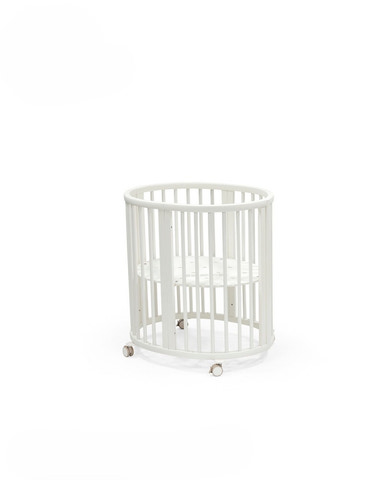 Mini spjälsäng från Stokke. Sängen har maximal luftcirkulation, låsbara svängbara hjul och höjdjusterbar botten. Dessa egenskaper ger bebisen en skön natts sömn, du kan förflytta sängen från rum till rum och botten gör det enkelt att lyfta i och ur barnet.