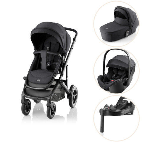 Smile 5z: Oavsett om det är en spännande resa till mor- och farföräldrarnas hus eller en skön tupplur i parken, erbjuder SMILE 5Z ultimat flexibilitet. Du behöver inte köpa en större bil – SMILE 5Z fälls ihop till en kompakt storlek och det automatiska låset håller den ihopfälld och lätt att hantera tills du är redo att åka igen. Den är dessutom fristående, vilket hjälper till att skapa utrymme när platsen är begränsad. Dessutom förhindrar det integrerade handtagsskyddet att handtaget blir smutsigt på marken. Gör det bekvämt för ditt barn genom att justera sätet till upprätt eller lutat läge, eller till liggande läge, med bara en hand. Dessutom håller den plana lutande positionen för hela barnvagnssektionen, tillsammans med det justerbara fotstödet, ditt barn väl skyddat på alla sidor. SMILE 5Z växer med ditt barn, så att det alltid sitter bekvämt. Två fotstöd – ett på sätesdelen och ett på ramen – gör att ditt barn kan vila fötterna naturligt så att det kan koncentrera sig på att njuta av äventyret ni är ute på. Manövrera enkelt genom trånga passager med de svängbara framhjulen eller lås dem på plats för att underlätta skogspromenader. De balanserade framhjulen kompenserar för ojämn terräng, så att du kan utforska världen med ditt barn, oavsett om det är på kullerstensgator eller leriga stigar.