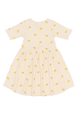 Smilla Rib Klänning från The New Siblings är en charmig och bekväm klänning i mjuk ribbad bomullsblandning. Med sitt lekfulla citronmönster och ljusa färg blir den snabbt en favorit i garderoben. Klänningen har korta ärmar och en lätt utställd kjol som ger rörelsefrihet och passar lika bra till lek som till kalas. Tack vare det stretchiga materialet sitter klänningen skönt hela dagen och följer barnets rörelser. En perfekt kombination av stil och komfort för alla tillfällen!