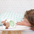 Sömntränaren Sam lär ditt barn när det är dags att sova och när det är okej att stiga upp. Sam blundar vid läggdags och öppnar ögonen på morgonen när det är okej att stiga upp. Nattlampan ändrar färg som ett trafikljus för att visa när det är natt, tidig morgon och när det är okej att stiga upp. Ett barn har ingen tidsuppfattning. För ett litet barn börjar dagen när det vaknar, vilket kan vara ganska tidigt (och tröttsamt) för föräldrarna. En sömntränare lär ditt barn med enkla visuella signaler när det är dags att sova och när det är okej att stiga upp. Även mycket små barn kan förstå detta begrepp: vid läggdags stänger Sam ögonen... och då är det dags att sova. På morgonen, vid den tidpunkt du har ställt in, vaknar Sam och öppnar ögonen för att visa att det är dag.