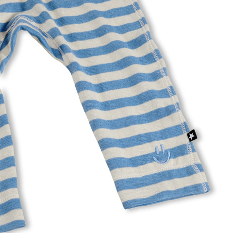 Sol Byxor - Blue Sand Stripe från Molo är ett härligt tillskott i barnens garderob. Byxorna är tillverkade i mjuk och luftig bomull som känns skön mot huden och ger maximal komfort hela dagen. Det klassiska randiga mönstret i blått och sandfärgat ger en lekfull och fräsch look, samtidigt som den elastiska midjan gör dem enkla att ta på och av. Passar lika bra till vardags som till mysiga stunder hemma. Molo är känt för sin höga kvalitet och sitt fokus på funktionella barnkläder, och dessa byxor är inget undantag – de är både slitstarka och stilrena.