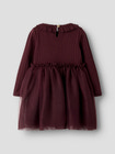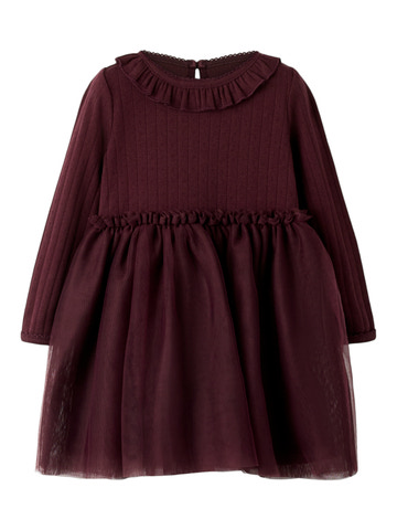 Solange Tulle Kjole fra Lil' Atelier er en yndig og stilfuld kjole, der kombinerer komfort og elegance. Overdelen er lavet i en blød, ribbet kvalitet, som føles behagelig mod huden, mens det lette tylskørt giver et eventyrligt udtryk. Kjolen har lange ærmer, en rynket krave og en praktisk knaplukning i nakken, så den er nem at tage af og på. Den dybe bordeaux nuance gør kjolen oplagt til både særlige anledninger og hyggelige hverdage, hvor der gerne må være lidt ekstra glans. En skøn kjole, der hurtigt bliver en favorit i garderoben.