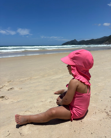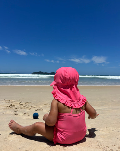 Solhatten Rosy från Vanilla COPENHAGEN är ett underbart tillskott till barnets sommargarderob. Med sin fina rosa färg och dekorativa volangkant ger den både stil och effektivt solskydd. Hatten är designad med en bred skärm och ett extra tygstycke som skyddar nacken, vilket gör den idealisk för långa dagar utomhus. Materialet är mjukt, lätt och stretchigt, vilket gör hatten bekväm att bära även under aktiva lekar. Den är enkel att ta på och av, och passar lika bra på stranden som i trädgården. Ett praktiskt och snyggt val för soliga dagar!