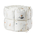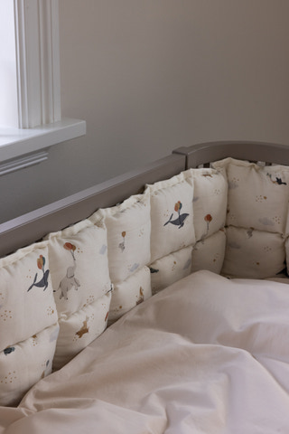 Sängkanten passar till Sebra Cot, Baby & Jr., med bottenplattan i det övre läget, samt till en standardbarnsäng som mäter 60 x 120 cm. Sebras design, World of Sebra, är ett fantasifullt djurmönster som kan ärvas mellan syskon. Sängkanten är vändbar, så du får en enfärgad, ljus krämfärgad sängkant på ena sidan och det unisexmönstret World of Sebra på den andra.