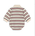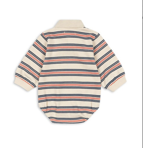 Mjuk overall i ekologisk bomull i klassisk polodesign. Har vanlig krage, knäppning och tryckknappar vid benöppningarna för enkel påklädning.