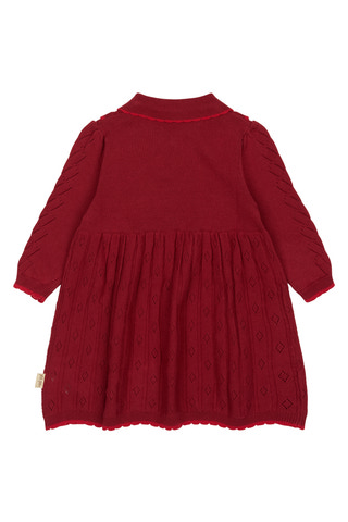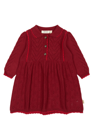 Vacker stickad klänning från Petit Piao med många fina detaljer. Klänningen knäpps med knappar fram och har ett snyggt stickat mönster som gör klänningen feminin och skön att ha på sig. Tillverkad i Kina.