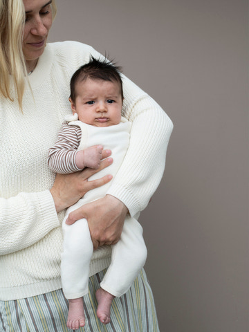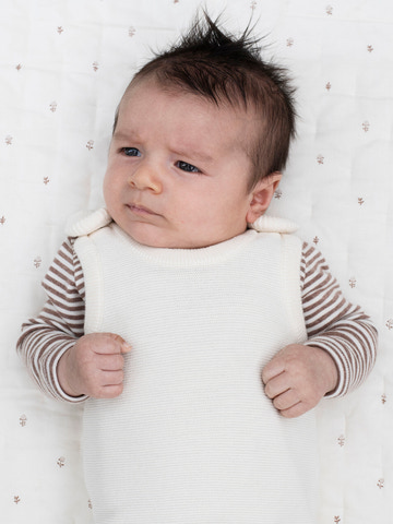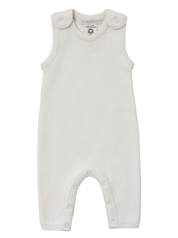 Den stickade romper från Serendipity Organics i en vacker krämfärg är ett perfekt val både för vardagsbruk och festliga tillfällen. Rompern är tillverkad av mjuk ekologisk bomull som känns skön mot barnets hud och garanterar god andningsförmåga. Den klassiska och tidlösa designen gör den lätt att kombinera med andra stilar, och den fina stickade strukturen ger den ett elegant utseende. Tryckknapparna på axlarna och längs benen gör det enkelt att ta på och av bodyen, samt att byta blöjor utan krångel. Den är designad med fokus på både funktionalitet och komfort, så att ditt barn kan röra sig fritt och leka ostört.