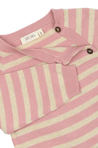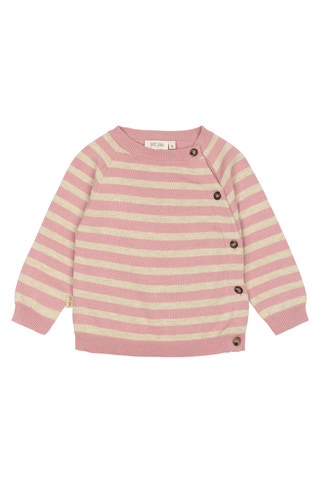 Långärmad överdel i mjuk och skön kvalitet. Designen har eleganta ränder på framsidan och dekorativa knappar på vänster sida. Det hela kompletteras av ett vackert ribbstickat mönster som ger en stilren och modern look.