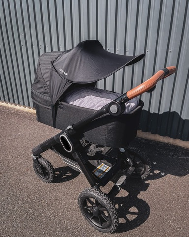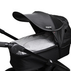 Universellt solskydd för sittvagn som skyddar ditt barn mot solen. Enkel att använda och passar de flesta barnvagnar och sittvagnar. UPF 50+ med UVA/UVB-skydd. Fäst elastiken under vagnen och justera så att den sitter tätt. Enkel att ta av och på. Kan vikas ihop och förvaras i sidofickan på skärmen.